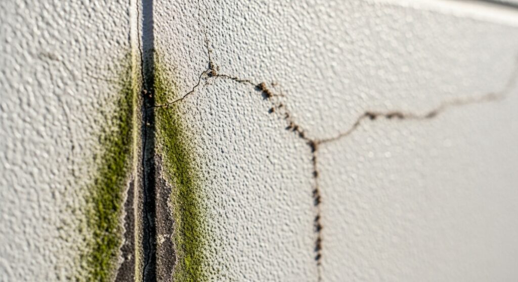 たとえば外壁に黒カビやコケが広範囲に発生している場合、家庭用洗剤では根本的な除去が難しく、再発の恐れがあります。またチョーキング(白い粉が付く現象)やひび割れ、塗膜の剥がれなどが見られるときは、外壁自体が劣化しているサインです。